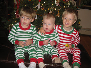 On Christmas Eve the boys got to stay up late and celebrate with cousin Brody. After a yummy dinner it was time to put on Christmas pj's! Thanks Nana!